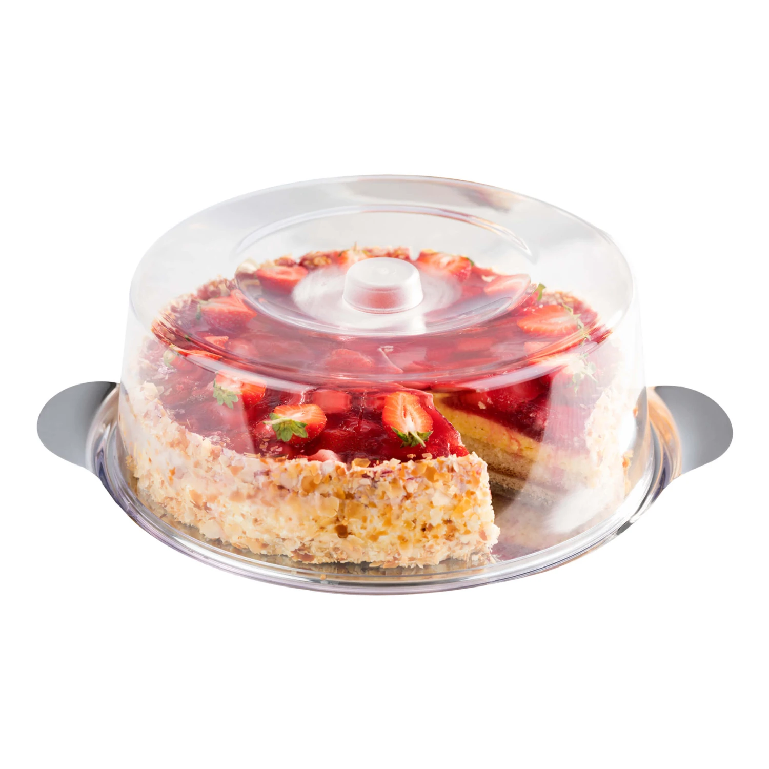 Die Tortenplatte ist aus 18/0 Edelstahl und die transparente Haube ist aus Polystyrol. Der Tortenbehälter ist stapelbar, spülmaschinengeeignet und kratzfest. Die obere Gebrauchstemperatur liegt bei ca. +70 °C.