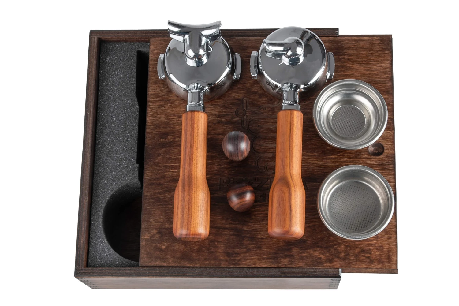Das 6-teilige Siebträger Set für die Bezzera Espressomaschine Unica ist in einer dekorativen Holzbox, einer Geschenkbox für Barista verpackt. Die Bezzera Holzbox ist auch ideal zur Aufbewahrung der Siebträger und Siebe. Im Set ist ein Bezzera Siebträger mit einem Auslauf und ein Bezzera Siebträger bzw. Filterträger mit Doppelauslauf für 2 Espresso gleichzeitig enthalten. Mit im Set enthalten sind auch die passenden Siebe für die beiden Siebträger. Zusätzlich sind 2 Knöpfe einen für den Dampfbezug und für die Espresso-Bezugshebel enthalten. Passend für alle Bezzera Siebträgermaschinen Unica.