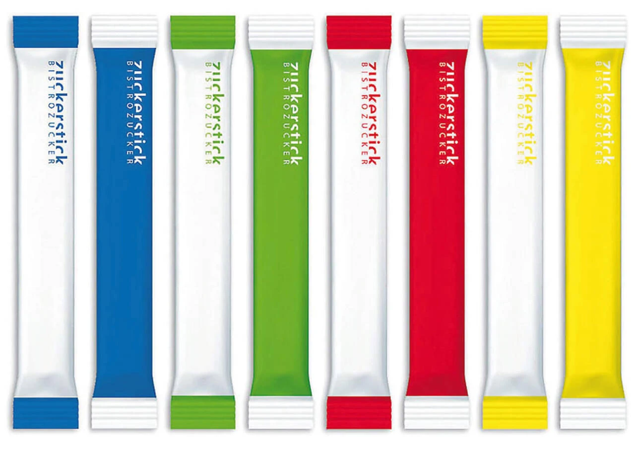 Hier kommt etwas Farbe ins Spiel. Die Zuckersticks sind in farblichen Portionspackungen verpackt und als Tassenbeilage zu einem Tee, Kaffee oder Cappuccino und Latte Macchiato sehr beliebt. In der Großpackung sind 1000 Zuckersticks mit jeweils 4g weißem Zucker pro Stick. Lieferung farblich sortiert.