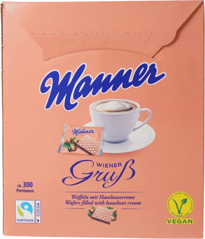 Die Manner Wiener Gruß Mini-Waffeln sind ein köstliches Gebäck, das jeden Gaumen erfreut. Jede Mini-Waffel ist mit einer aromatischen Haselnuss-Creme-Füllung versehen, die ein wahrer Genuss ist. Diese Napolitaner Waffeln sind perfekt für zwischendurch oder zum Teilen mit Freunden und Familie.