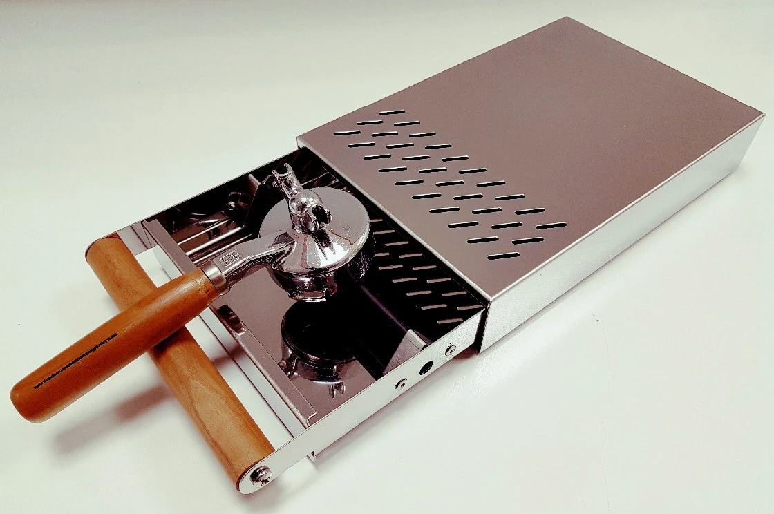 Diese Sudschublade überzeugt durch die qualitativ hochwertige Verarbeitung in einem zeitlosen Design. Die Kaffeeschublade ist von The Coffee Knock Drawer Company und ideal für Espressomaschinen und Kaffeemühlen als praktisches Barista Zubehör mit einer Stellfläche von (BxT) 14×24 cm. Die Abklopfbox ist eine robuste Sudschublade für Kaffeesatz und Kaffeereste und hat zur besseren Belüftung auf der Oberseite mehrere Lüftungsschlitze. Die Schublade der Abschlagbox ist leichtgängig und hochwertig verarbeitet. Die Abschlagkante der Sudschublade ist im Dreiecksformat und besonders gut geeignet zum Abklopfen des Siebträgers.
