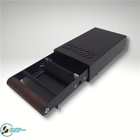 Diese Sudschublade überzeugt durch die qualitativ hochwertige Verarbeitung in einem zeitlosen Design. Die Kaffeeschublade ist von The Coffee Knock Drawer Company und ideal für Espressomaschinen und Kaffeemühlen als praktisches Barista Zubehör mit einer Stellfläche von (BxT) 14×24 cm. Die Abklopfbox ist eine robuste Sudschublade für Kaffeesatz und Kaffeereste und hat zur besseren Belüftung auf der Oberseite mehrere Lüftungsschlitze. Die Schublade der Abschlagbox ist leichtgängig und hochwertig verarbeitet. Die Abschlagkante der Sudschublade ist im Dreiecksformat und besonders gut geeignet zum Abklopfen des Siebträgers. Der Walnussgriff kann in der Farbe variieren.