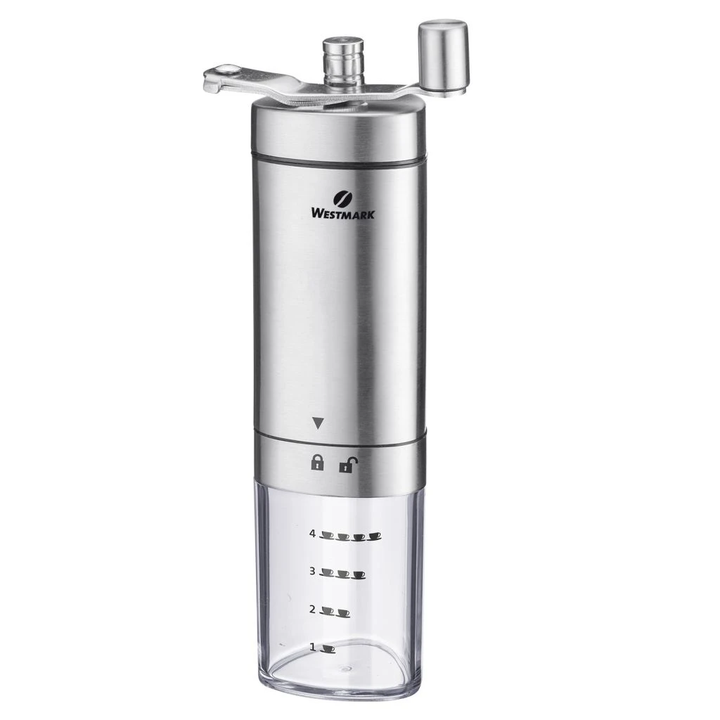 Eine praktische und manuelle Handmühle zum Mahlen von Kaffeebohnen und Espressobohnen. Mit dem robusten Keramikmahlwerk lassen sich verschieden Mahlstufen einstellen. Diesen können sie von Fein: Espressokocher bis zu Grob: French Press einstellen. Die elegante Mühle Brasilia ist für bis zu 4 Tassen geeignet und kommt ohne Strom aus. Daher ist die Kaffeemühle ideal für Ausflüge und für das Campen. Mit dem klappbaren Hebel lässt sich die Hand-Kaffeemühle platzsparend verstauen. Genießen sie frisch gemahlenen Kaffee auch unterwegs.